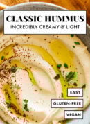 I am not much of a fan of store-bought hummus and only liked one brand/ flavor. This recipe is a game changer! So silky smooth with plenty of flavor. I make this at least once a month and my family eats it with chips and veggies on the reg.